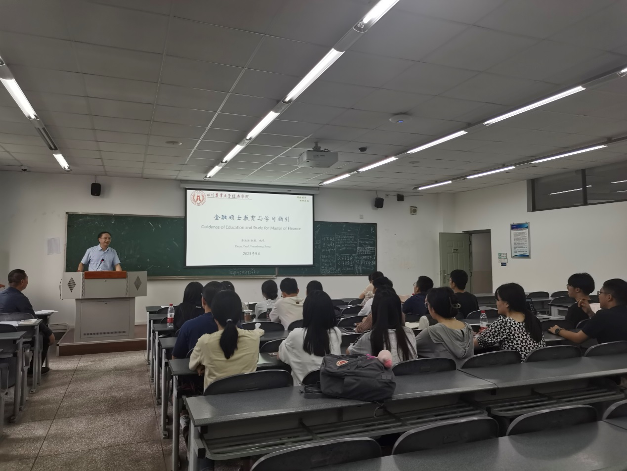 9月16日下午,学院举行了金融专硕首届新生入学教育大会,学院院长蒋远胜教授、金融专硕负责人肖诗顺教授、金融学系主任臧敦刚教授、副系主任刘艳副教授以及金融专硕2023级全体新生参加了入学教育大会。会议由徐慧丹副教授主持。