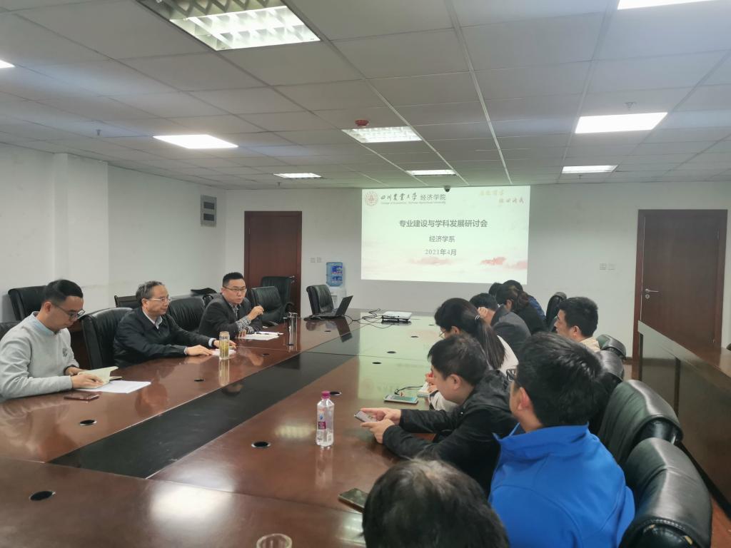 4月13日下午,经济学系在1-403会议室召开专业建设与学科发展研讨会,学院院长蒋远胜教授和系室全体教职工参会,会议由经济学系主任曹正勇教授主持。