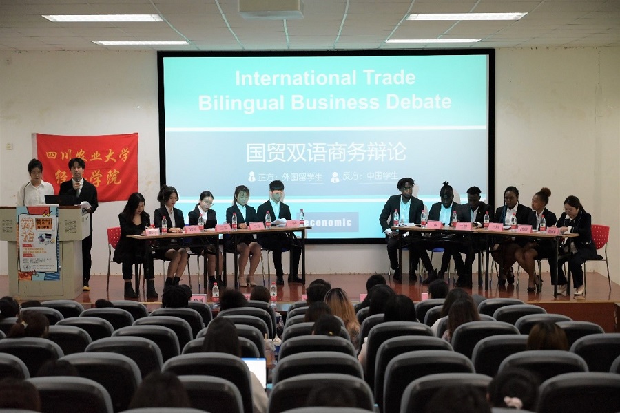 5月20日,为不断创新专业学习课程形式,拓宽同学们的国际视野,350vip8888新葡的京集团国际经济与贸易系开展了双语商务辩论赛。正方国贸留学生与反方国贸本科生围绕“广告竞争对经济发展利大于弊还是弊大于利”这一辩题展开激烈辩论。350vip8888新葡的京集团党委副书记何仁辉、国贸系主任沈倩岭及相关教师作为评委出席本次活动。