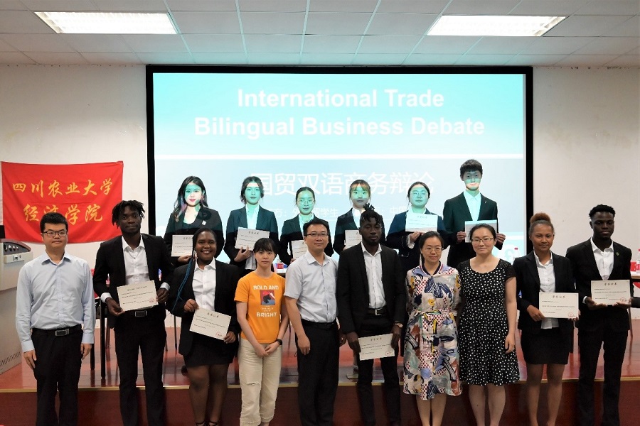 辩论赛尾声,评委老师为获奖选手颁奖,国贸系宋涛博士用中英双语对双方表现作出点评,指出本次比赛目的在于锻炼同学们的语言能力和知识运用,增进双方交流,拓宽国贸学生的国际化视野。选手们纷纷表示在辩论过程中深切感受到不同文化的思想碰撞和理念交流,获益良多。本次“国贸双语商务辩论”为学校本科生和留学生交流提供借鉴经验,将有力助推我校国际化人才培养。