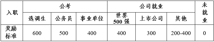 3.申请条件:学院学生团体联合会和本科学生党支部主要学生干部在其最高任职期满后考核为合格及其以上等级者,若毕业时成功就业,按照曾任学生干部最高职务系数、考核等级系数、就业质量发放就业奖励。