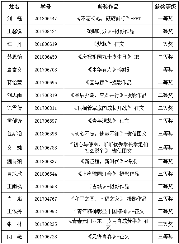 经各支部、小班、个人自愿申报,评委集中评选,并报学院团委评审,现将350vip8888新葡的京集团“中国有梦,青年有为”喜迎建国70周年系列活动获奖名单公布如下: